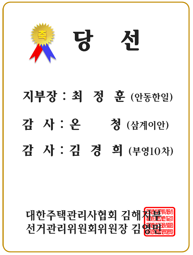´ëÇÑÁÖÅðü¸®»çÇùȸ ±èÇØÁöºÎ ÀÓ¿ø´ç¼±À» Áø½ÉÀ¸·Î ÃàÇϵ帮¸ç, ¹ýÁ¤9±â ±èÇØÁöºÎÀÇ ¹«±ÃÇÑ ¹ßÀü°ú °Ç½ÂÀ» ±â¿øÇÕ´Ï´Ù.^^