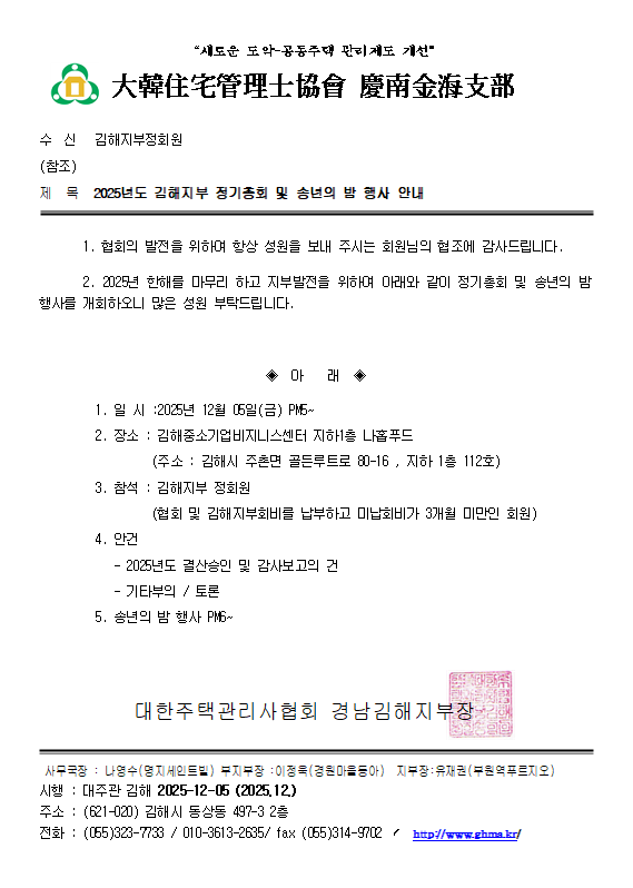 2025³âµµ ±èÇØÁöºÎ Á¤±âÃÑȸ¹× ¼Û³âÀÇ ¹ã Çà»ç °øÁö
