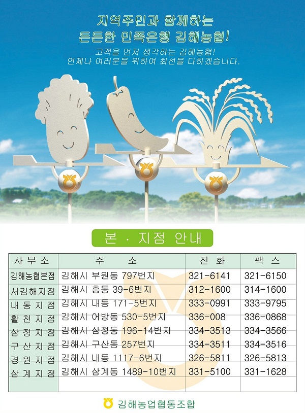 (621-020) °æ³² ±èÇØ½Ã µ¿»óµ¿ 497-3 2Ãþ ´ëÇÑÁÖÅðü¸®»çÇùȸ ±èÇØÁöºÎ    T.055)323-7733 / 070-896-7734
