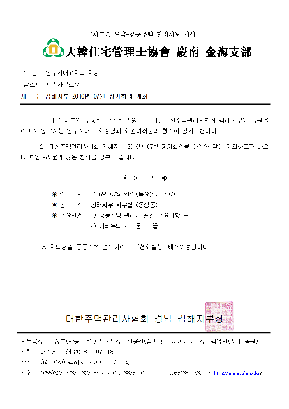 (621-020) °æ³² ±èÇØ½Ã µ¿»óµ¿ 497-3 2Ãþ ´ëÇÑÁÖÅðü¸®»çÇùȸ ±èÇØÁöºÎ    T.055)323-7733 / 070-896-7734