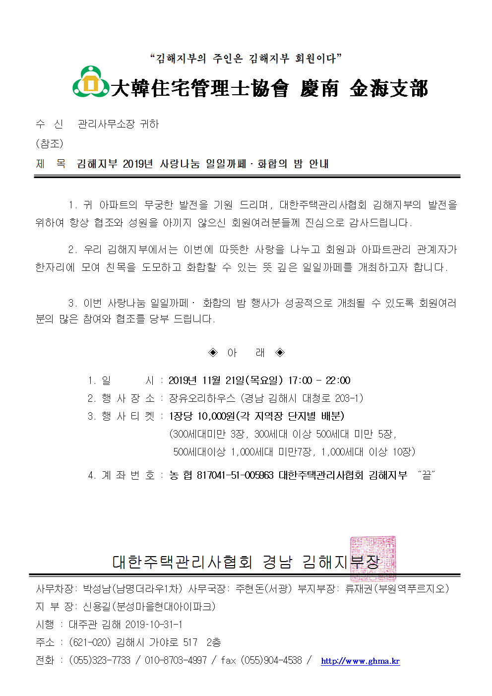 (621-020) °æ³² ±èÇØ½Ã µ¿»óµ¿ 497-3 2Ãþ ´ëÇÑÁÖÅðü¸®»çÇùȸ ±èÇØÁöºÎ T.055)323-7733 / 070-896-7734 Copyright(c) 2006 ÁÖÅðü¸®»çÇùȸ ±èÇØ½ÃÁöºÎ. All Right Reserved
