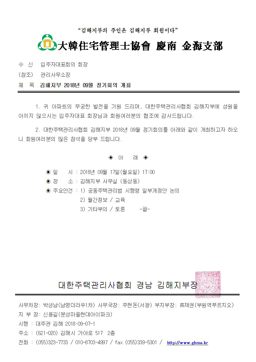2018³â09¿ù ±èÇØÁöºÎ Á¤±âȸÀÇ °ø¹®.hwp (58.5K) [21] DATE : 2018-09-07 16:39:15