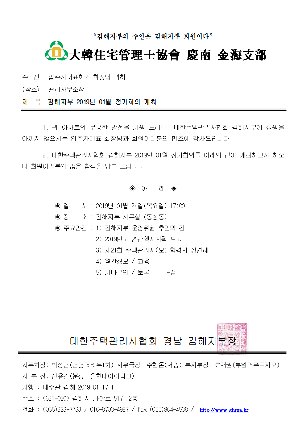 2019³â01¿ù ±èÇØÁöºÎ Á¤±âȸÀÇ °ø¹®.hwp (58.5K) [24] DATE : 2019-01-17 14:57:55