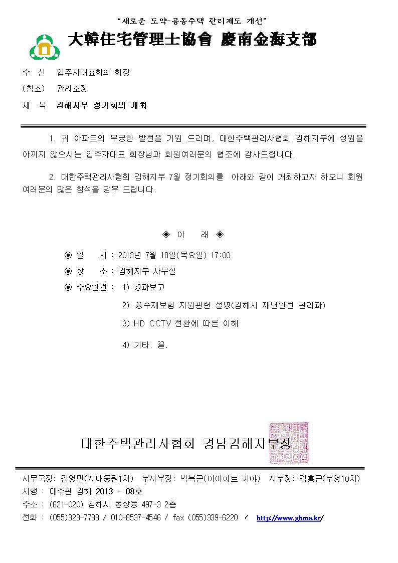 (621-020) °æ³² ±èÇØ½Ã µ¿»óµ¿ 497-3 2Ãþ ´ëÇÑÁÖÅðü¸®»çÇùȸ ±èÇØÁöºÎ    T.055)323-7733 / 070-896-7734