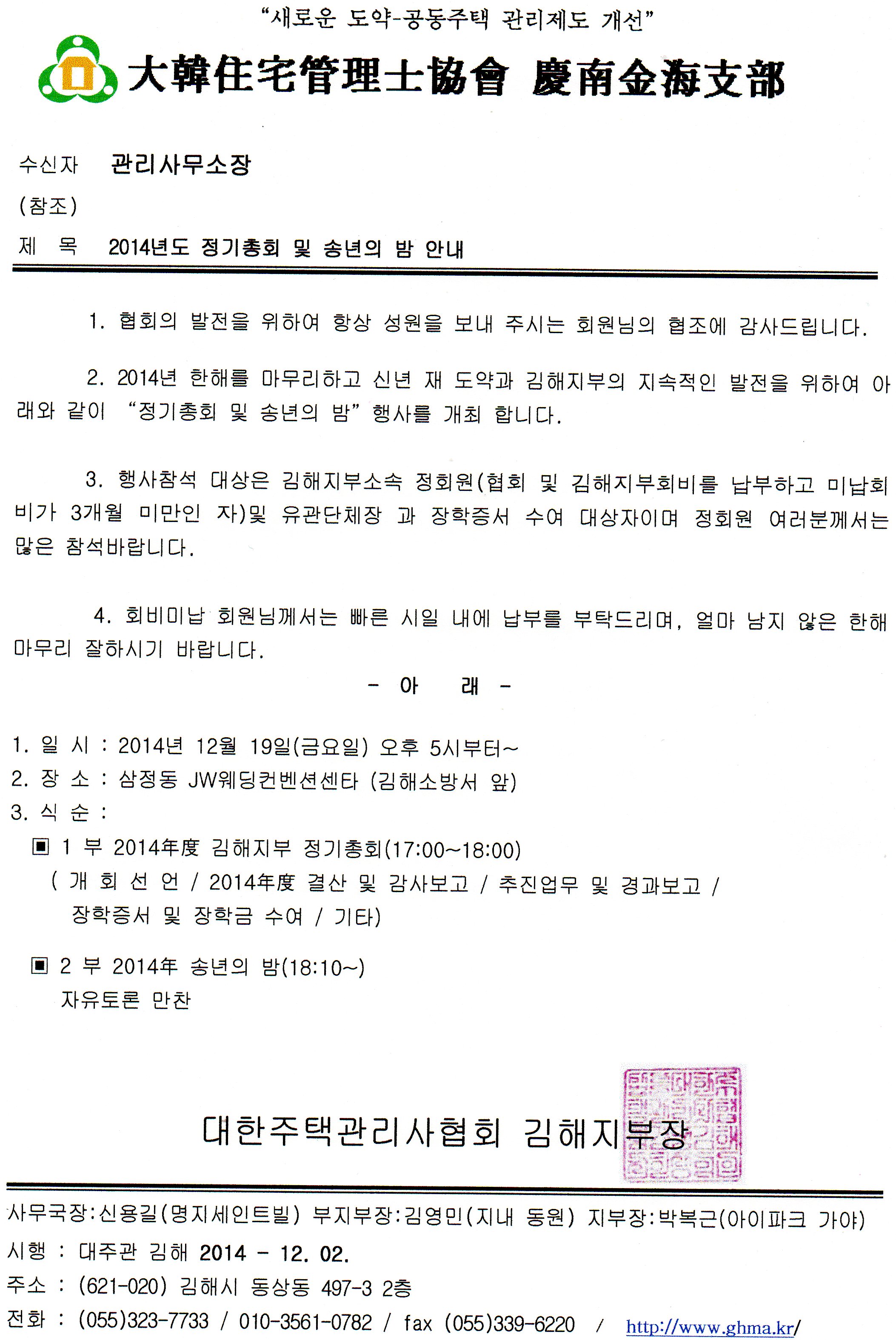 ±èÇØÁöºÎ 2014³â Á¤±âÃÑȸ ¹× ¼Û³âÀǹ㠰øÁö