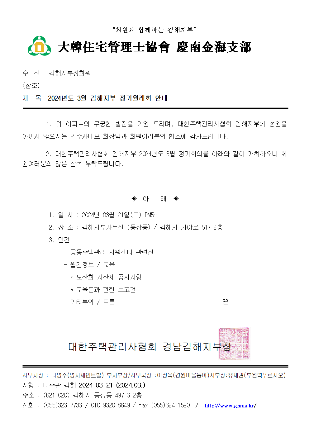 (621-020) °æ³² ±èÇØ½Ã µ¿»óµ¿ 497-3 2Ãþ ´ëÇÑÁÖÅðü¸®»çÇùȸ ±èÇØÁöºÎ T.055)323-7733 / 070-896-7734 Copyright(c) 2006 ÁÖÅðü¸®»çÇùȸ ±èÇØ½ÃÁöºÎ. All Right Reserved