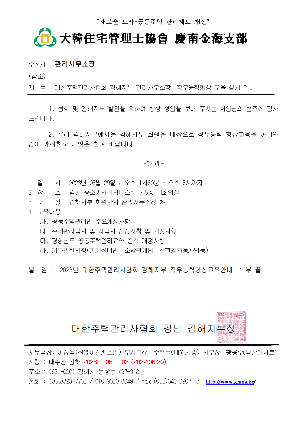 (2023.06.29) ±èÇØÁöºÎȸ¿ø Á÷¹«±³À° ¾È³».pdf (229.9K) [60] DATE : 2023-06-20 15:41:16