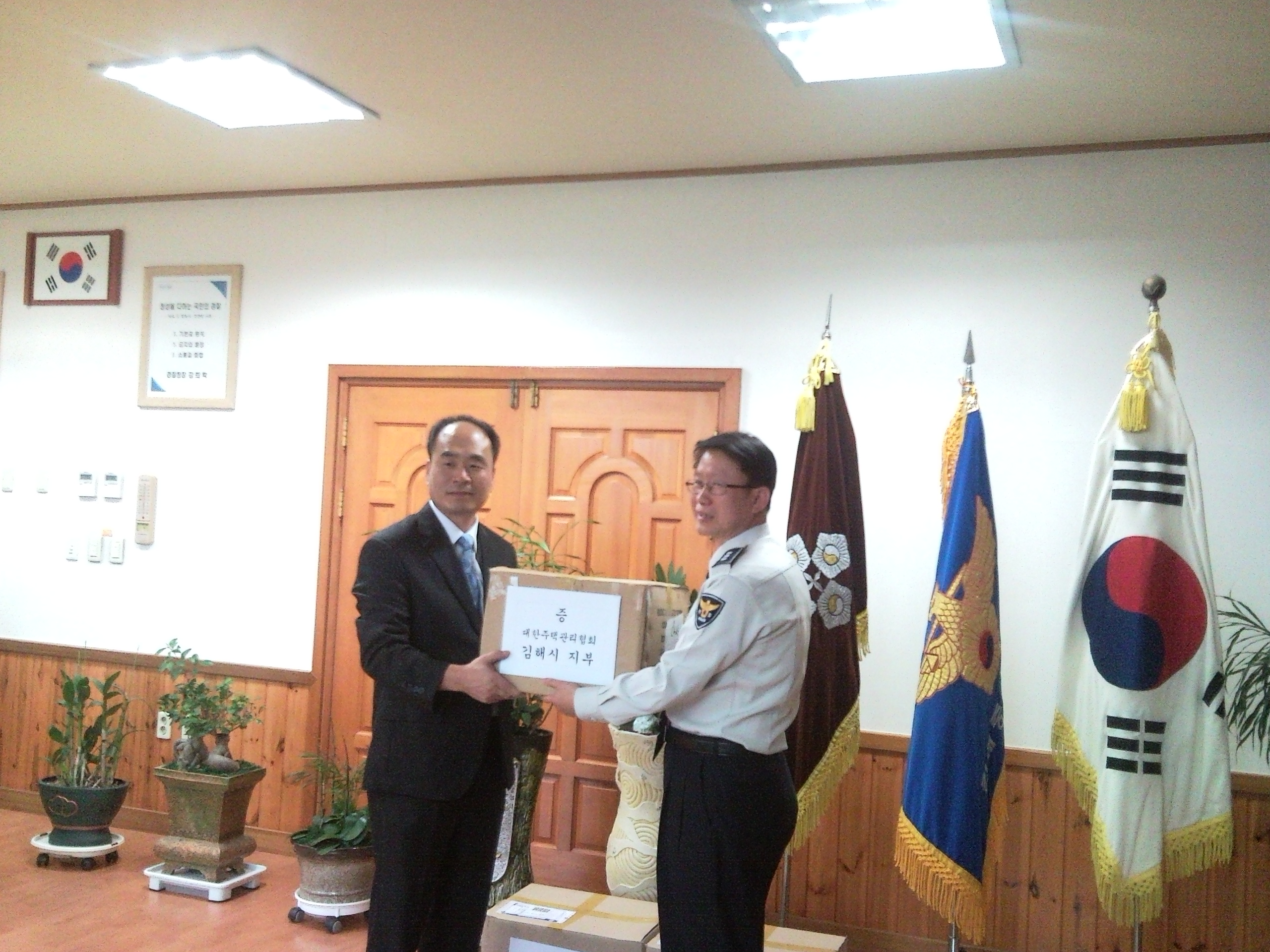 Áö³ 21ÀÏ ±èÇØÁߺΰæÂû¼ ¼Àå½Ç¿¡¼ ´ëÇÑÁÖÅðü¸®»çÇùȸ ±èÇØÁöºÎ´Â ÁÖÅÿë â¹® µµ³°æº¸±â 1,000°³¸¦ ±âÁõÇÏ´Â Àü´Þ½ÄÀ» °¡Á³½À´Ï´Ù. ÀÌ Çà»ç´Â 33³â°£ °æÂû¿¡ Çå½ÅÇØ ¿Â ½É¹æ¼· ȸ¿ø´ÔÀÇ µµ¿ò¾Æ·¡ ÀÌ·ç¾î Á³À¸¸ç ½É¹æ¼· ȸ¿ø´ÔÀº 10¿ù 30ÀÏÀÚ·Î °æÂûÁ÷À» ÅðÁ÷Çϰí ÁÖÅðü¸®»ç·Î¼ »õ·Î¿î »ýȰÀ» ½ÃÀÛÇÒ °èȹÀÔ´Ï´Ù. ±âÁõÇÑ µµ³ °æº¸±â°¡ ÁÖÅð¡ Ä¡¾È¾÷¹«¿¡ ÀÛÀº µµ¿òÀÌ µÇ±â¸¦ ±â´ëÇÏ¸ç ½Ã¹Î ¾È³çÀ» À§ÇÏ¿© Ä¡¾ÈȰµ¿¿¡ ³ë·ÂÇϽô ±èÇØ°æÂû¼ Á÷¿ø ¿©·¯ºÐÀÇ °Ç½ÂÀ» ±â¿øÇÕ´Ï´Ù.