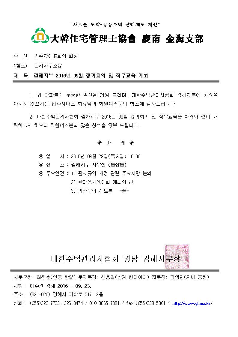2016³â 09¿ù 29ÀÏ ±èÇØÁöºÎ Á¤±âȸÀÇ °ø¹®.hwp (67.0K) [22] DATE : 2016-09-26 14:26:22