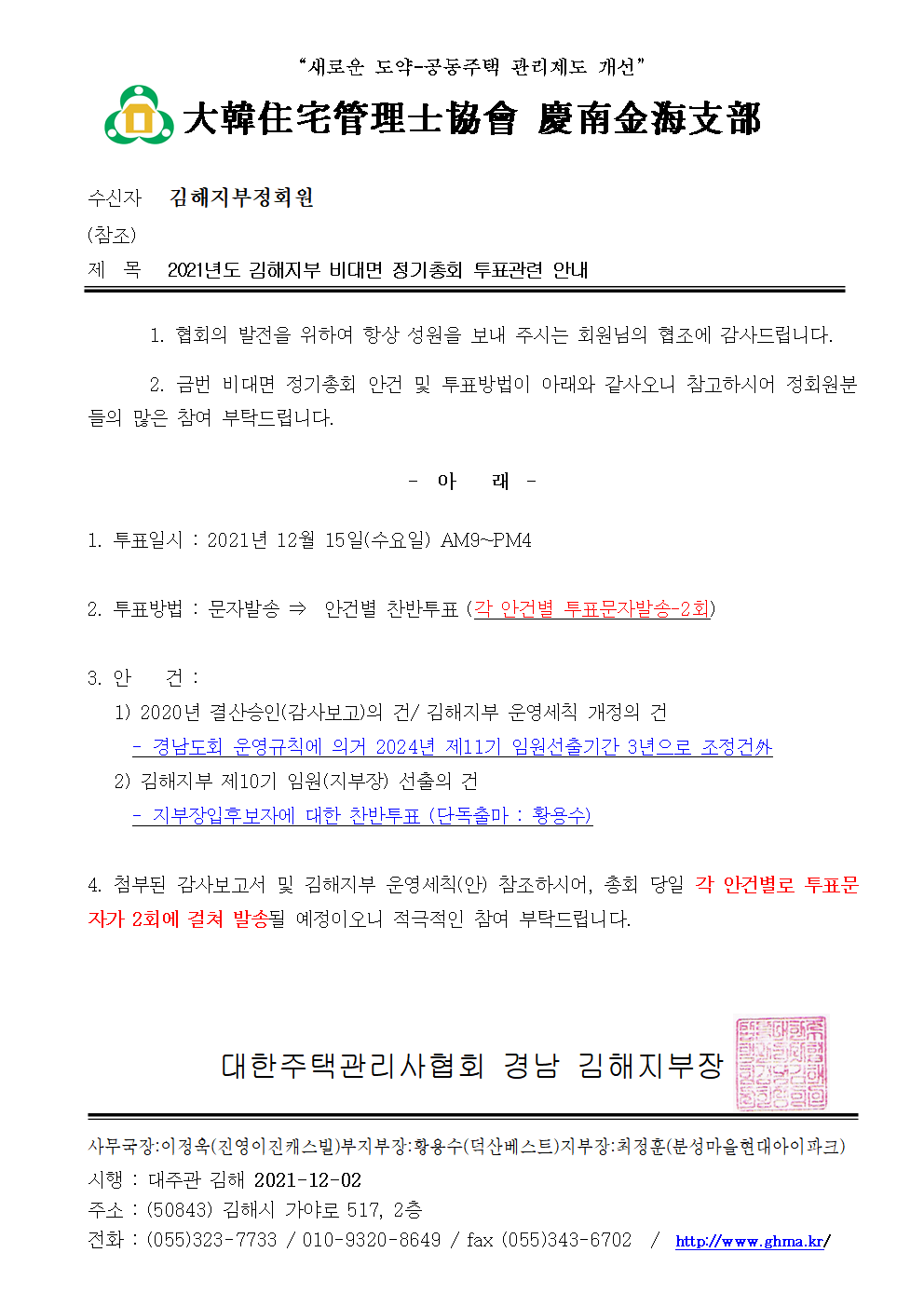 (621-020) °æ³² ±èÇØ½Ã µ¿»óµ¿ 497-3 2Ãþ ´ëÇÑÁÖÅðü¸®»çÇùȸ ±èÇØÁöºÎ T.055)323-7733 / 070-896-7734 Copyright(c) 2006 ÁÖÅðü¸®»çÇùȸ ±èÇØ½ÃÁöºÎ. All Right Reserved