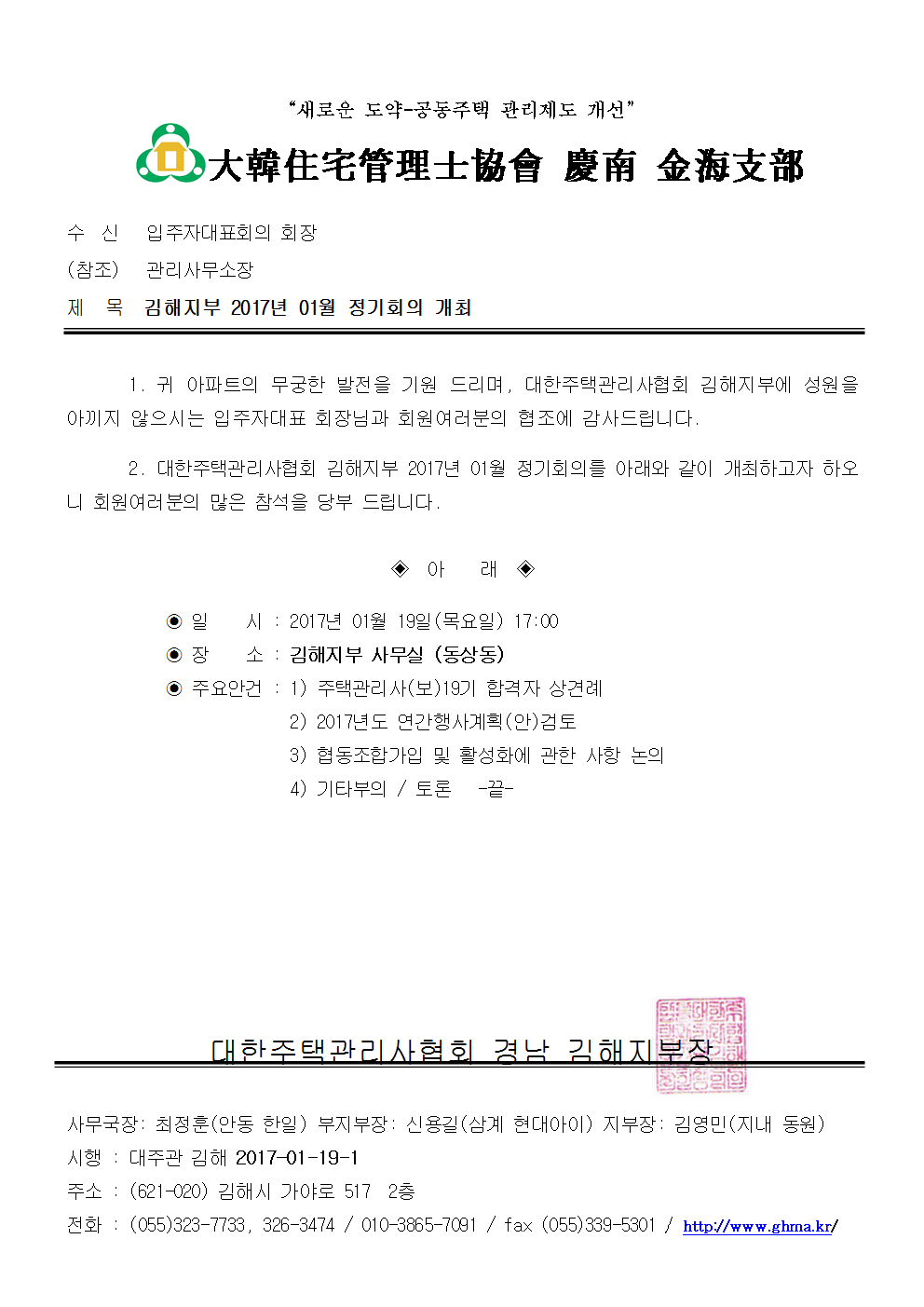 2017³â 01¿ù 19ÀÏ Á¤±âȸÀÇ ¾È³»