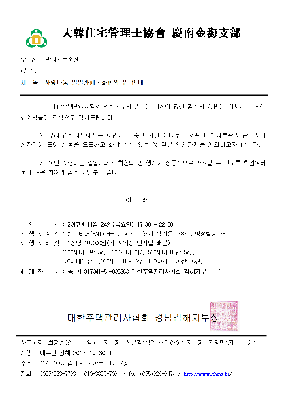 (621-020) °æ³² ±èÇØ½Ã µ¿»óµ¿ 497-3 2Ãþ ´ëÇÑÁÖÅðü¸®»çÇùȸ ±èÇØÁöºÎ T.055)323-7733 / 070-896-7734 Copyright(c) 2006 ÁÖÅðü¸®»çÇùȸ ±èÇØ½ÃÁöºÎ. All Right Reserved